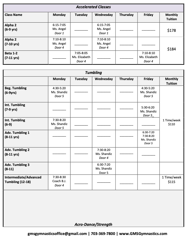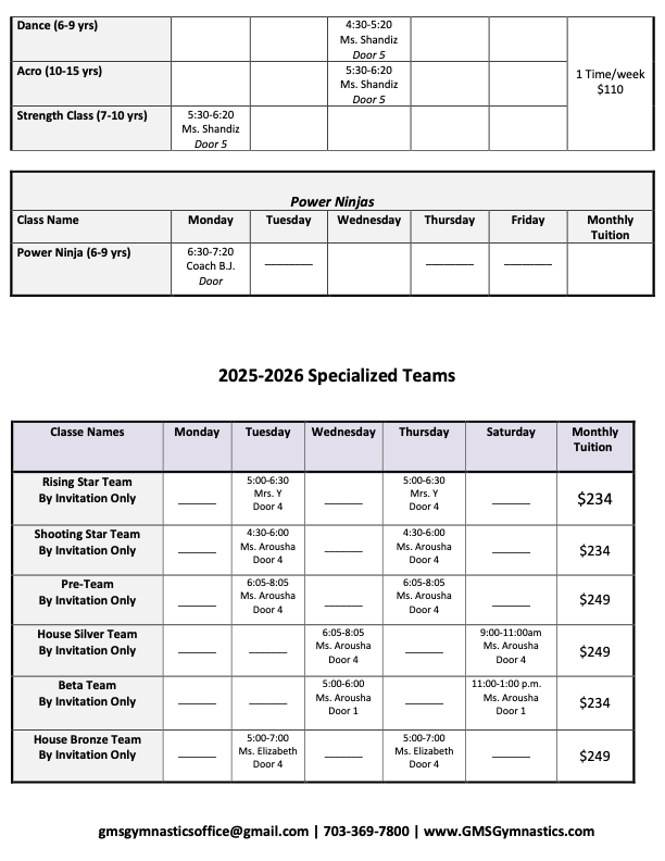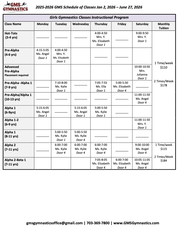 REGISTER FOR CLASSES To check availability, please visit our customer portal 2025-2026 Schedule Check availability here